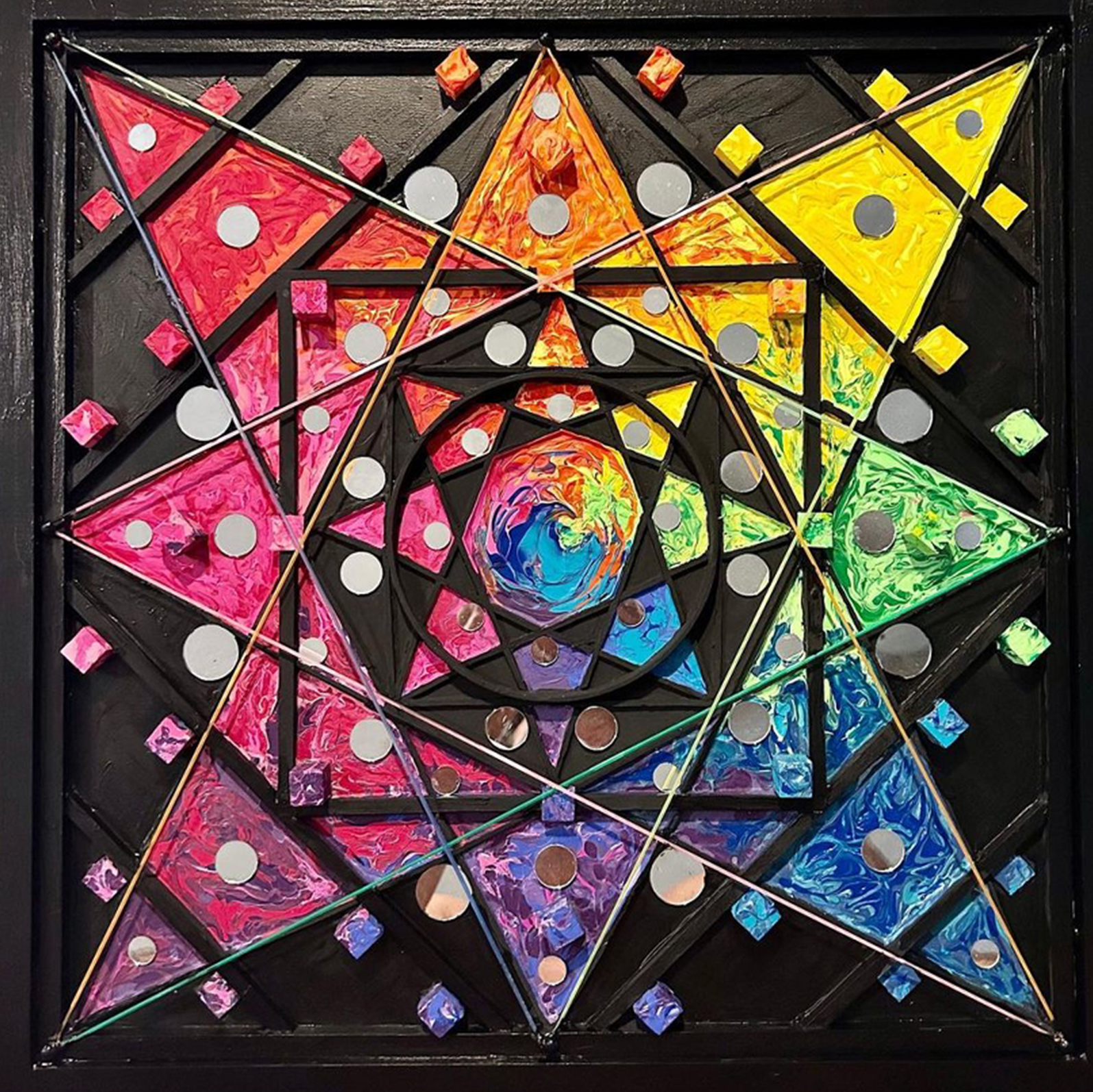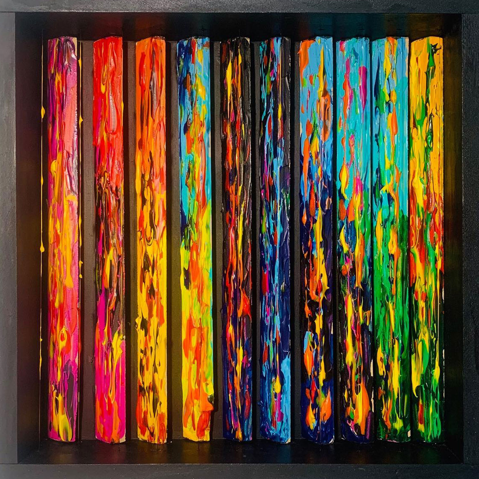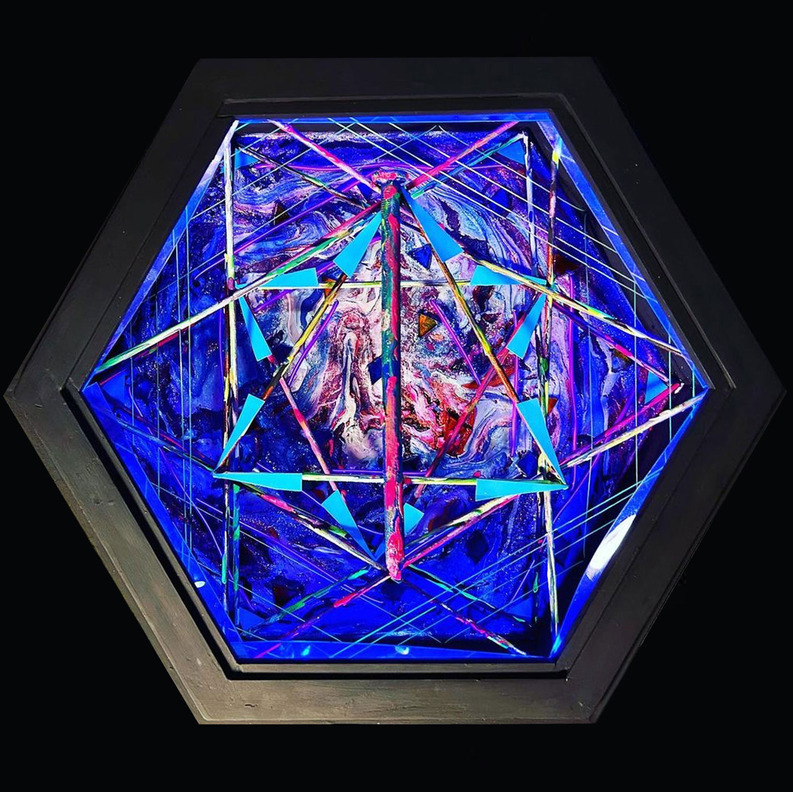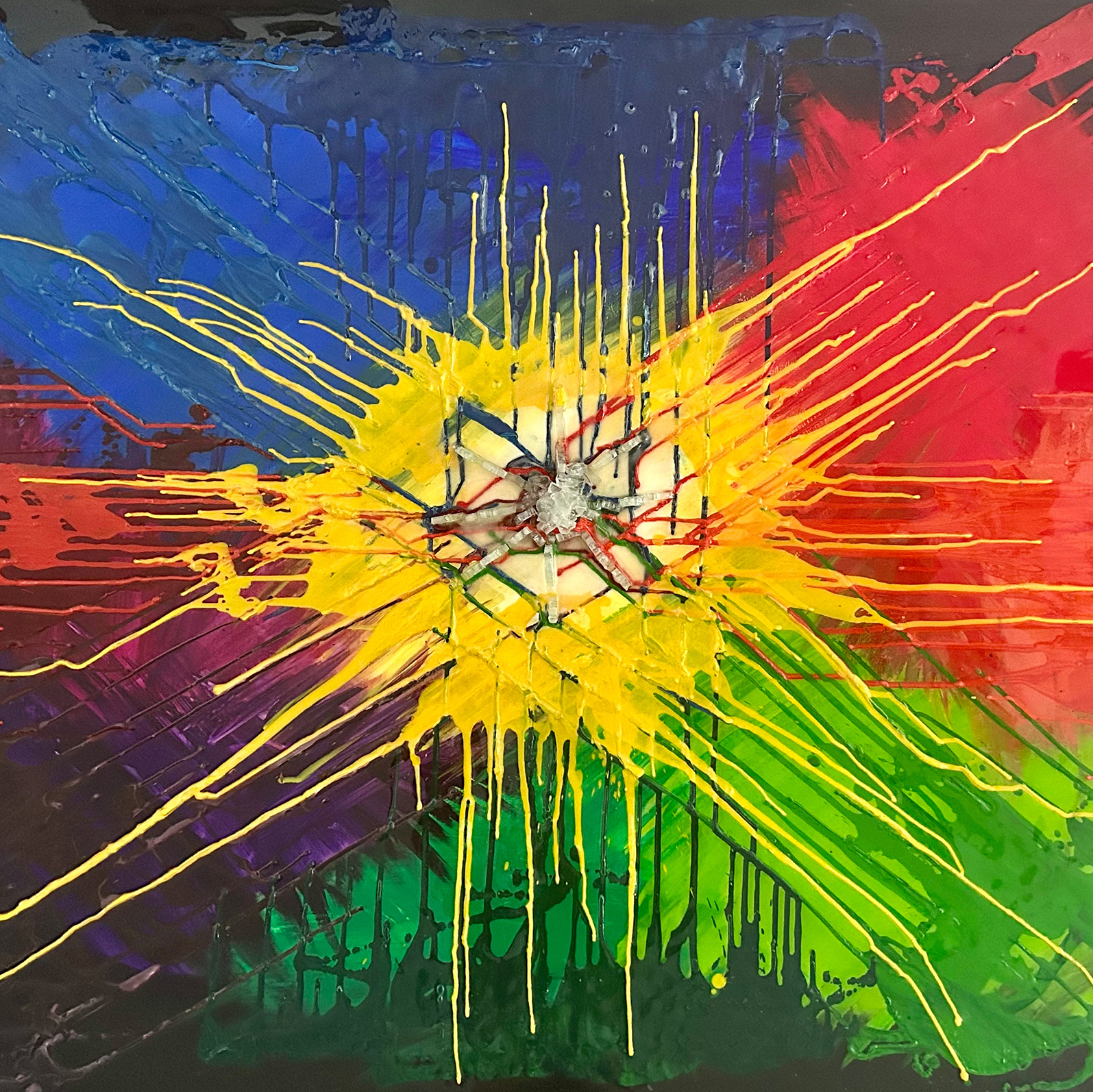 I am from Venezuela, an industrial designer by profession but I have been passionate about art always. I love abstract art, most of the time I recycle objects and turn them into art, I love mixing techniques and bright colors, many of my paintings have three ways of being seen, with daylight, blacklight and nightlight.